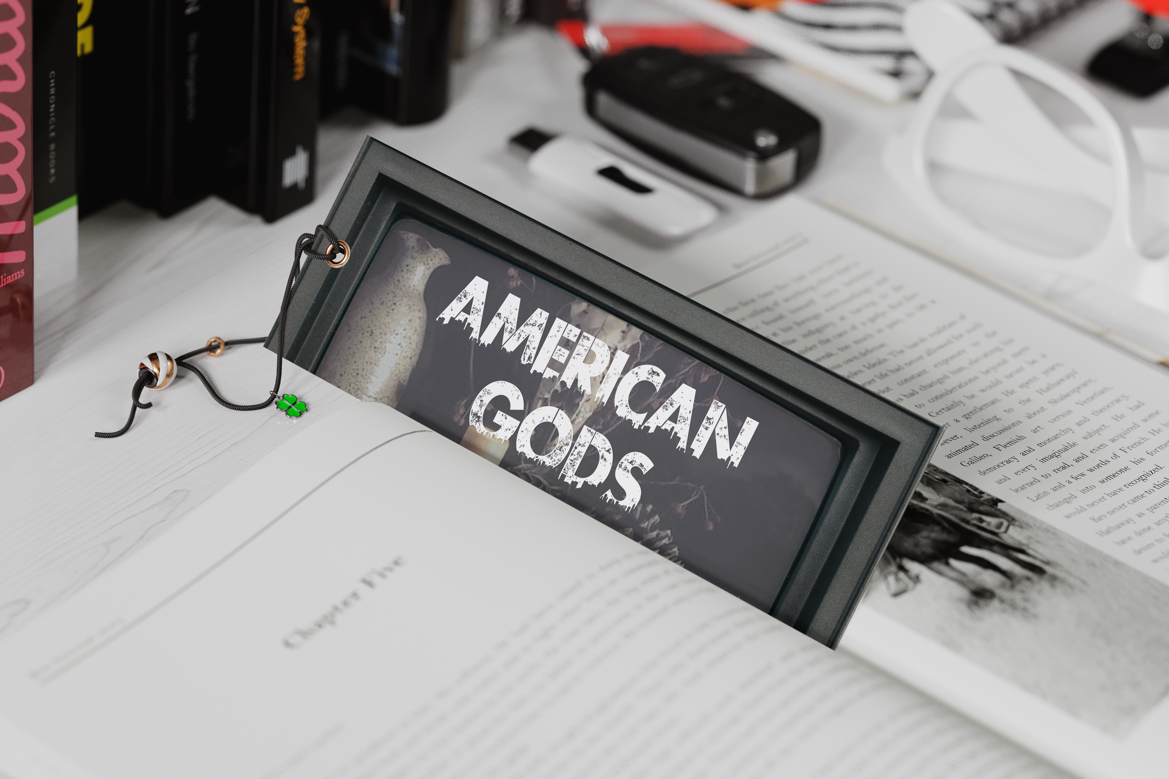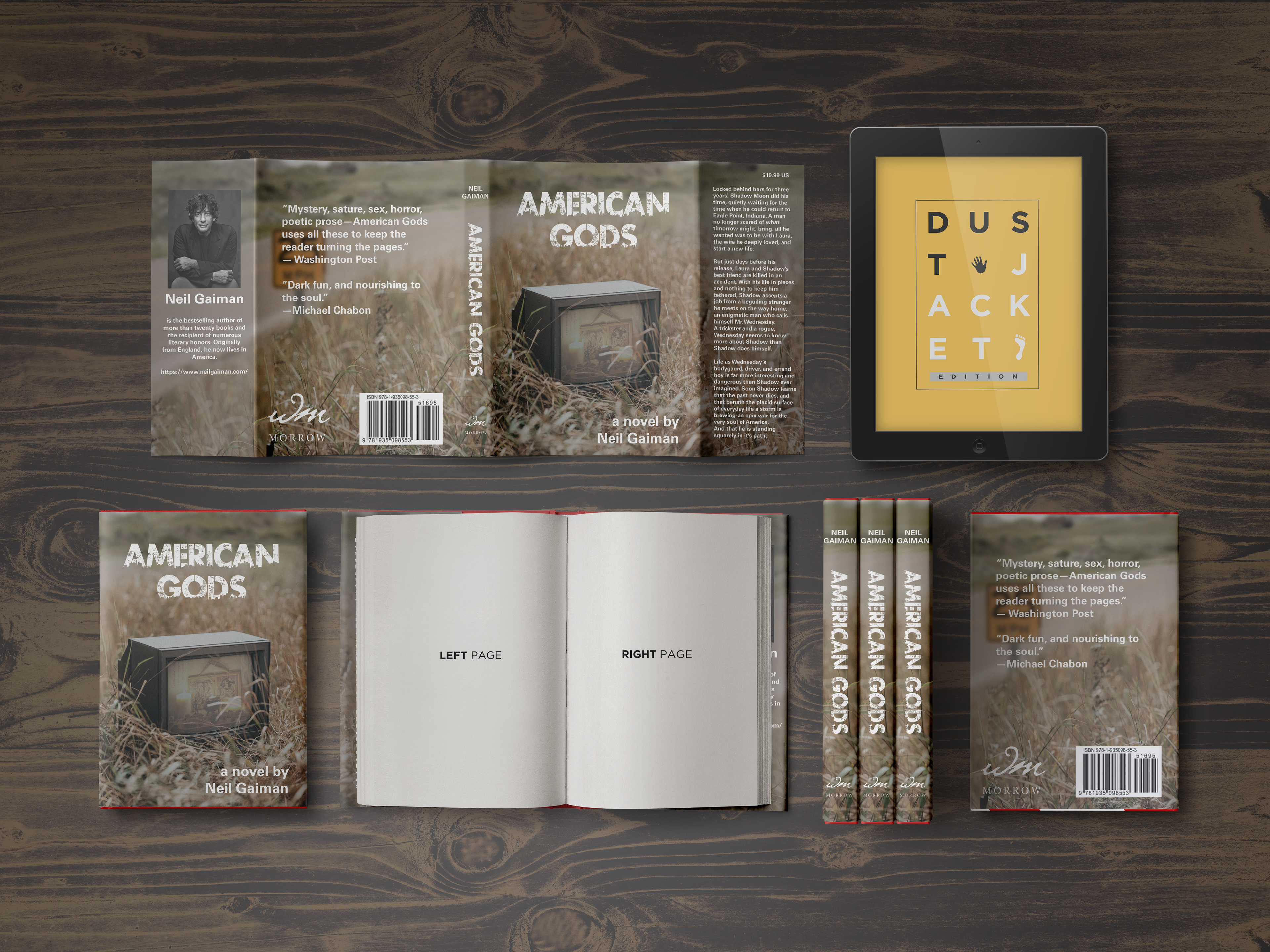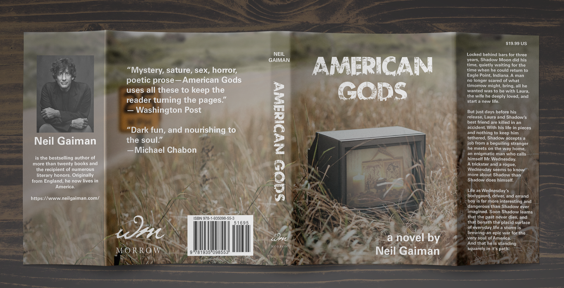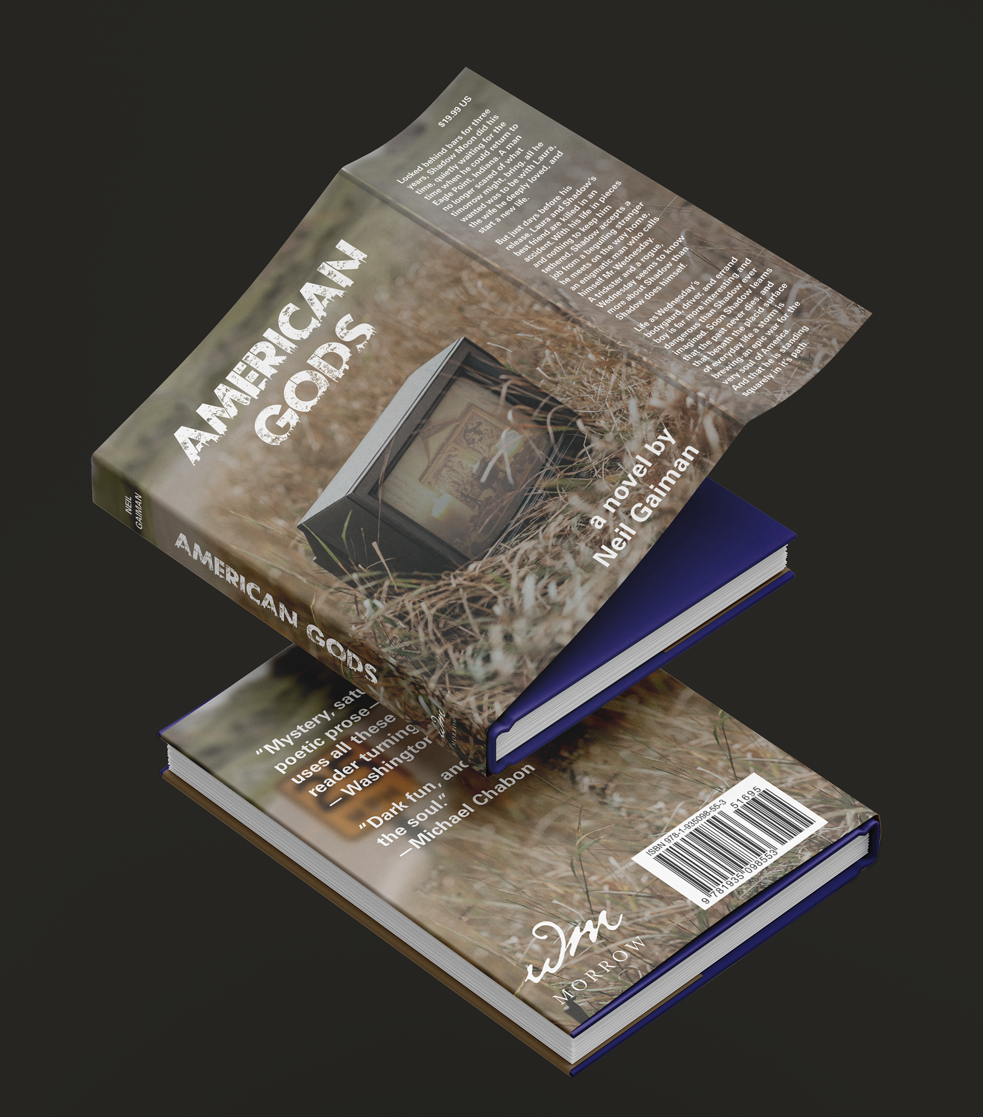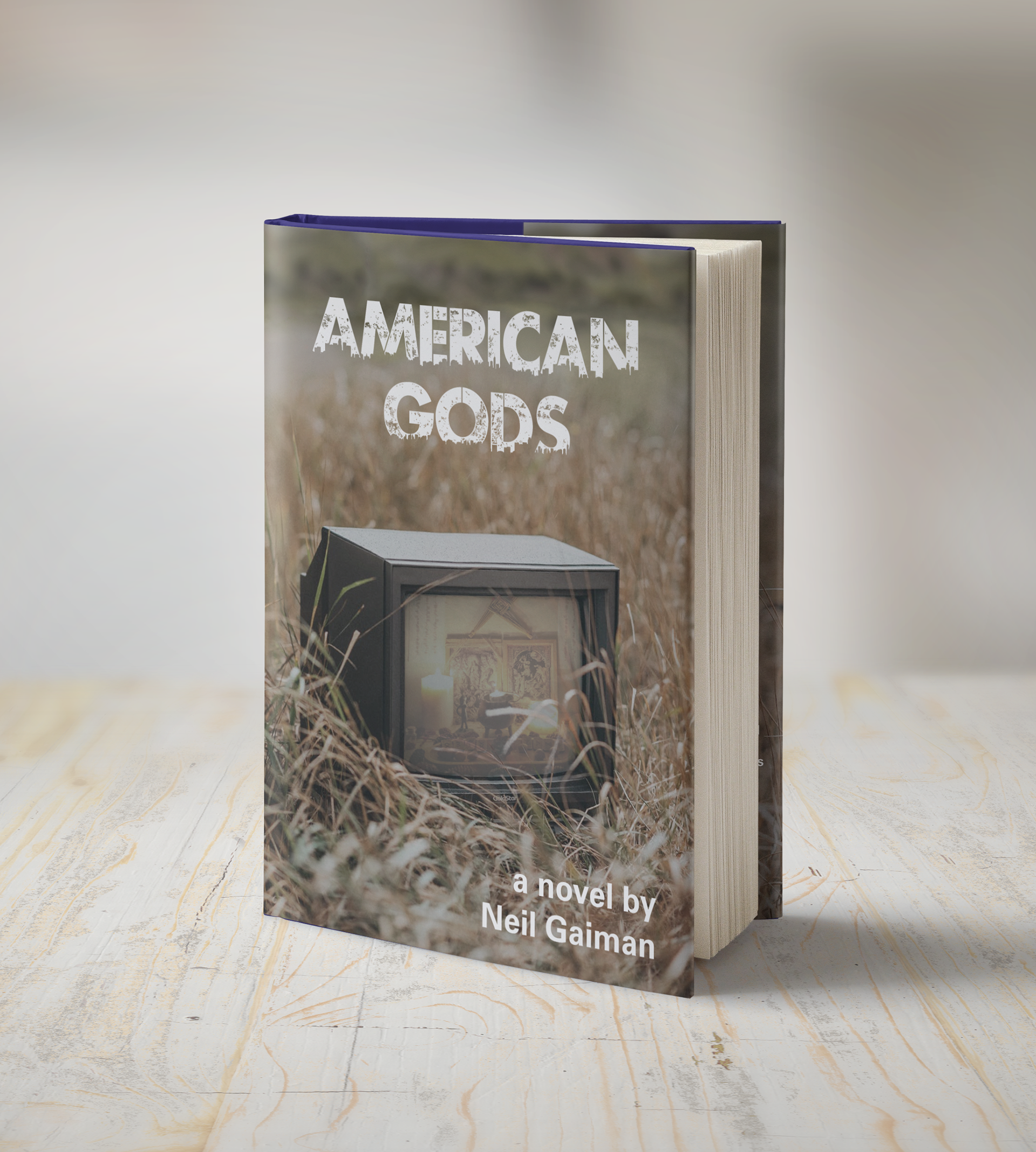 The plot of Neil Gaiman's American Gods unravels itself over the course of the book. Nearly all of the existing book covers hint to one of the characters true identity without actually giving any indication to the larger themes of the book. Through photo manipulation I created this scene of a pagan altar on a discarded TV set to introduce readers to the central conflict of the story: ancient traditions versus modern worship of technology.